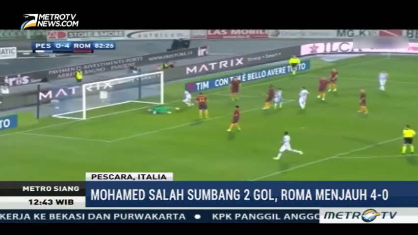 Mohamed Salah memborong dua gol dalam kemenangan AS Roma atas Pescara. Kekalahan kali ini memutuskan harapan Percara untuk bertahan di Liga Italia Serie A musim depan.