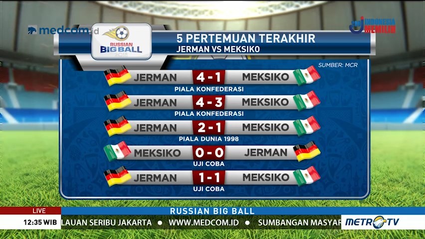 Menuai hasil yang kurang memuaskan di lima laga uji coba terakhir, Jerman dan Meksiko akan saling bentrok di laga perdana penyisihan grup F Piala Dunia 2018. Faktor kecepatan dan mental pemain akan menjadi penentu kemenangan di laga nanti. Cek Berita dan Artikel yang lain di Google News