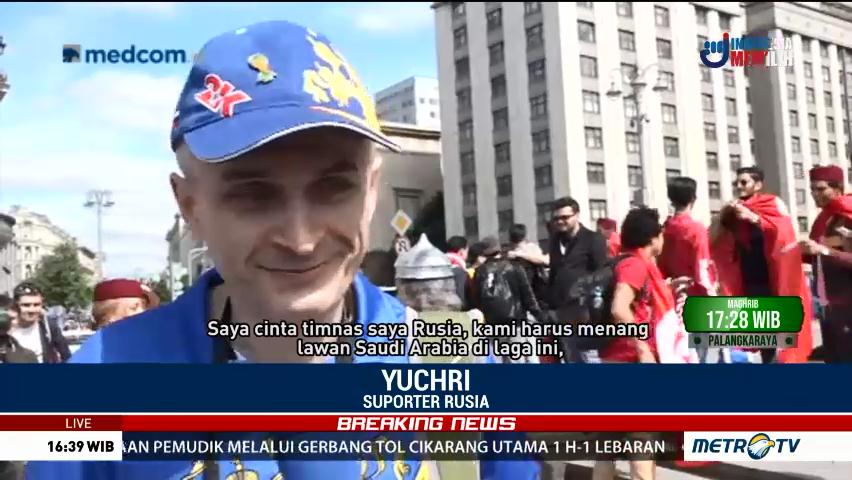 Rusia optimis bisa mengalahkan Arab Saudi di laga pembuka Piala Dunia 2018. Suporter Rusia berharap timnya lolos hingga perempat final. Cek Berita dan Artikel yang lain di Google News