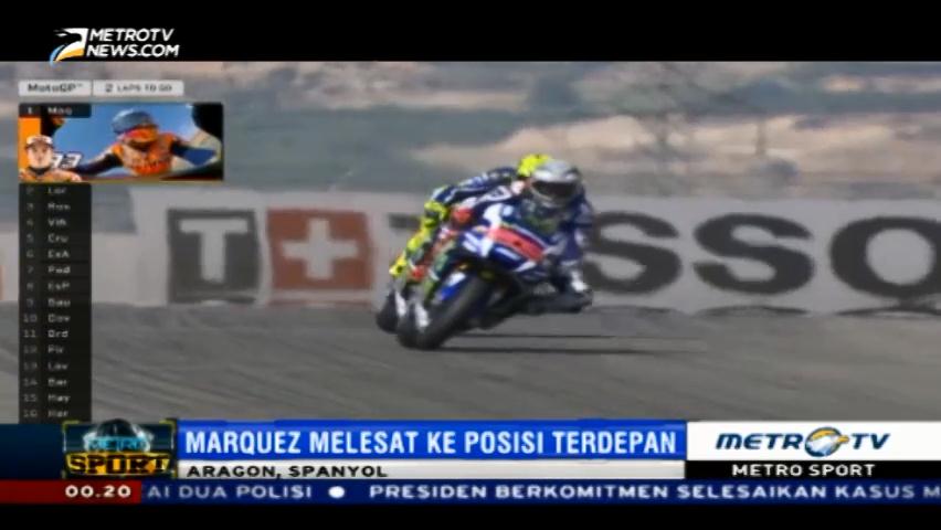Setelah sempat jatuh di lap awal dan melorot ke urutan lima, pembalap Honda Marc Marquez berhasil tampil sebagai juara di seri balapan Moto GP Aragon.