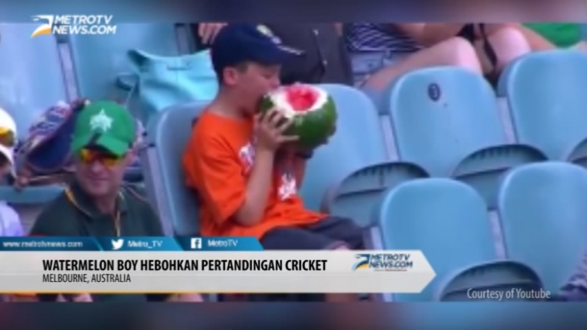 Ada yang unik di tengah-tengah pertandingan cricket di Australia, seorang bocah tersorot kamera tengah memakan semangka utuh beserta kulitnya. Akibat kejadian itu, bocah bernama Mitchell Shibeci tersebut mendadak menjadi terkenal. Cek Berita dan Artikel yang lain di Google News