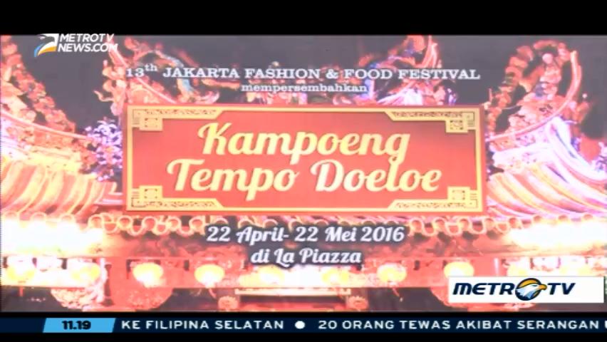 Kehadiran 'Kampoeng Tempo Doeloe' melengkapi acara Jakarta Fashion and Food Festival (JFFF) 2016 di kawasan Kelapa Gading, Jakarta. Ada lebih dari 90 UKM yang menyajikan berbagai kuliner tanah air, Minggu (24/4/2016). Cek Berita dan Artikel yang lain di Google News