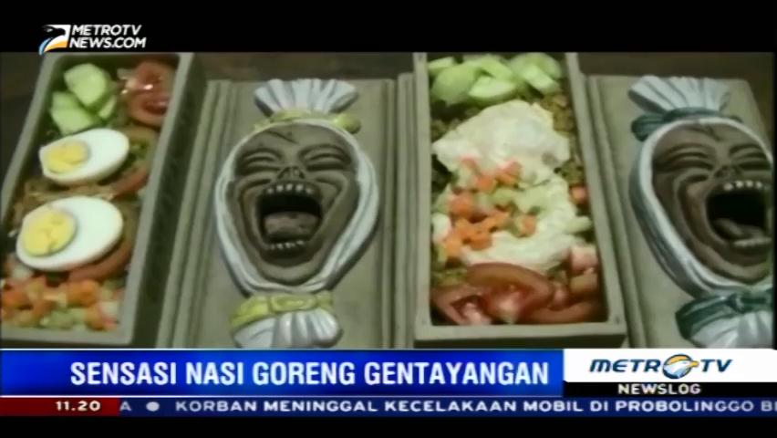 Nasi Goreng Gentayangan, sesuai dengan temanya yang mistis, Nasi Goreng Gentayangan memiliki menu dengan nama – nama yang menyeramkan. Ada Nasi Goreng Misteri Gunung Berapi, Mak Lampir, Buto Ijo, Terwongan Casablanca, Lawang Sewu, Kuntilanak, Suster Ngesot, dan lain sebagainya. Presentasinya pun sangat menarik karena mayoritas nasi goreng tidak disajikan di atas piring, tapi dalam miniatur peti mati, Minggu (4/9/2016). Cek Berita dan Artikel yang lain di Google News