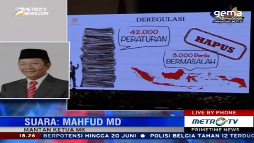 Mantan Ketua MK Mahfud MD menilai langkah Pemerintah menghapus 3.143 perda harus dilakukan dengan prosedur. Pemerintah bisa meminta legislatif review atau DPRD diminta membahas kembali perda yang dianggap bermasalah, Sabtu (18/6/2016). Cek Berita dan Artikel yang lain di Google News