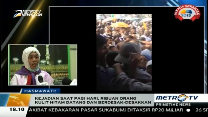Hasmawati, jemaah haji Indonesia asal Majene, Sulawesi Barat, menjadi salah satu korban yang selamat dalam tragedi di jalur 204 di Mina Kamis (24/9) kemarin. Hasmawati menceritakan bagaimana detik-detik mengerikan yang dialaminya saat ribuan orang melintas dan menginjak-injaknya, Jumat (25/9/2015). Cek Berita dan Artikel yang lain di Google News