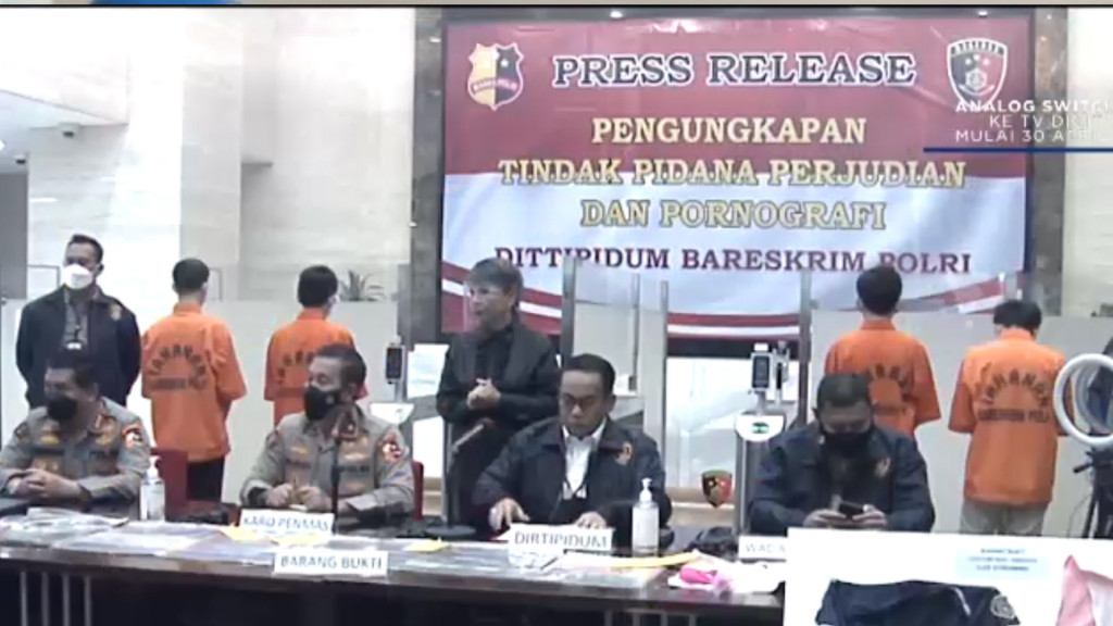 Bareskrim Polri menangkap empat tersangka kasus perjudian dan pornografi online yang bisa diakses sekaligus dalam sebuah situs internet. Dalam sebulan, situs tersebut bisa meraup omzet hingga Rp4,5 miliar.