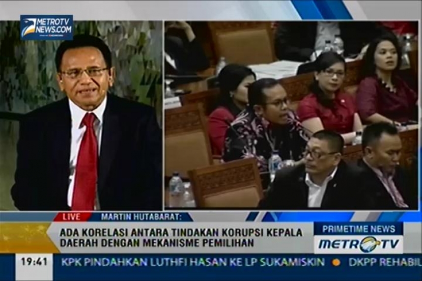 Primetime News: Jeda sidang paripurna RUU Pilkada, pimpinan antar fraksi sedang melakukan lobi mengenai RUU. Hadir dalam dialog Primetime News Pengamat Politik Ikrar Nusa Bhakti, Pakar Hukum Tata Negara Maruarar Siahaan, dan anggota Fraksi Gerindra Martin Hutabarat dari gedung DPR, Kamis (25/9/2014).