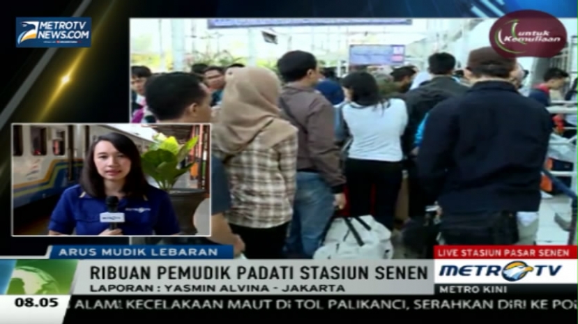 Satu hari menjelang lebaran, Stasiun Pasar Senen telah dipadati oleh ribuan pemudik sejak pagi, Kamis (16/7/2015). Menurut pengakuan penumpang, tahun ini Stasiun Pasar Senen lebih kondusif dibandingkan tahun-tahun sebelumnya.