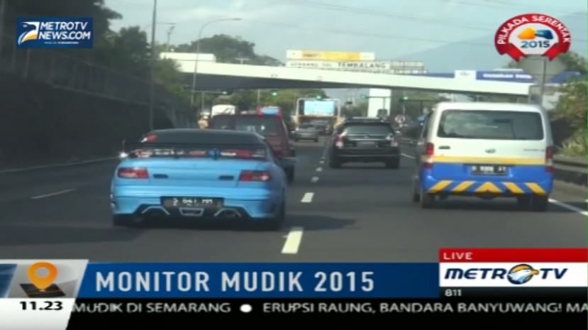 Satu hari menjelang lebaran, arus lalu lintas di tol Tembalang Semarang terpantau ramai lancar, Kamis (16/7/2015).