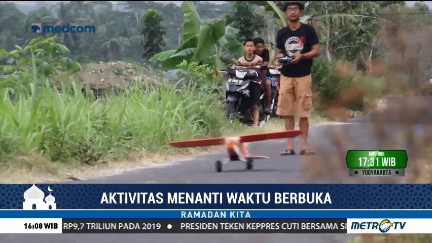 Sekelompok pemuda di Kabupaten Bantul, Daerah Istimewa Yogyakarta menunggu waktu berbuka dengan bermain aeromodelling di tengah sawah. Kegiatan ini juga menjadi ajang tukar ilmu pengetahuan antar anggota seputar teknik mekanik miniatur pesawat terbang.
