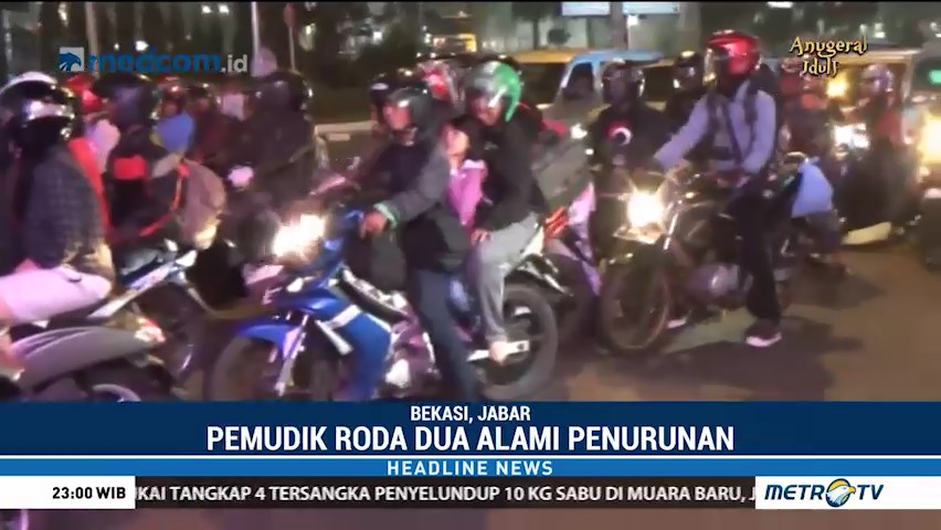 Empat hari menjelang lebaran, jumlah kendaraan roda ruda yang melintasi jalan raya Kalimalang, Bekasi, Jawa Barat, mengalami penurunan dibandingkan kemarin. Meskipun begitu, namun masih ada pemudik roda dua yang membawa barang melebihi muatan.