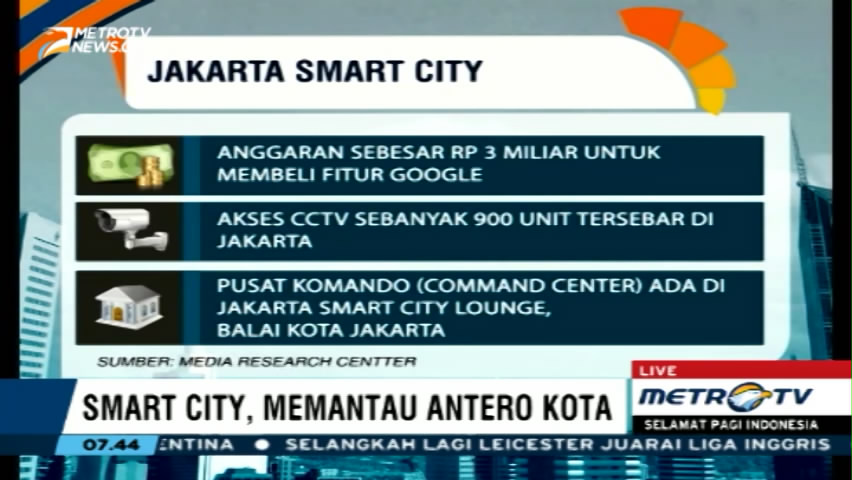 Smart city adalah tatanan kota cerdas yang berberan dalam memudahkan masyarakat mendapatkan informasi secara cepat dan tepat. Pemprov DKI Jakarta telah meresmikan konsep Smart City sejak akhir Desember 2014, Rabu (27/4/2016).