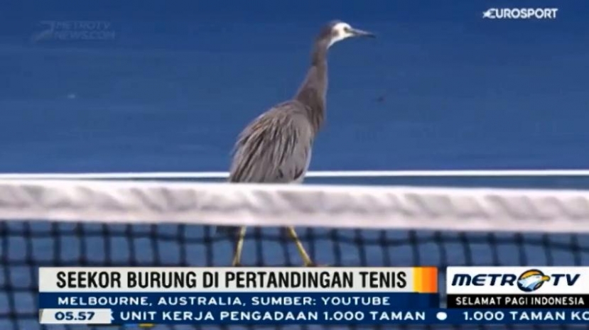 Metrotvnews.com: Tamu tak diundang hadir dalam ajang tenis Australia Terbuka di Melbourne Park kemarin Selasa (19/1). Seekor burung masuk di arena pertandingan antara petenis Serbia Victor Troicki dan petenis Spanyol Daniel Munoz de la Nava. Cek Berita dan Artikel yang lain di Google News