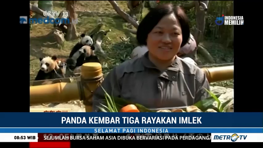 Panda kembar tiga merayakan Tahun Baru Imlek dengan makanan spesial yang telah dipersiapkan khusus. Panda kembar tiga satu-satunya di dunia ini tidak hanya memakan batang bambu, daun bambu, atau wortel saja. Mereka juga mengonsumsi roti jagung kukus yang berbentuk menyerupai emas batangan Tiongkok.