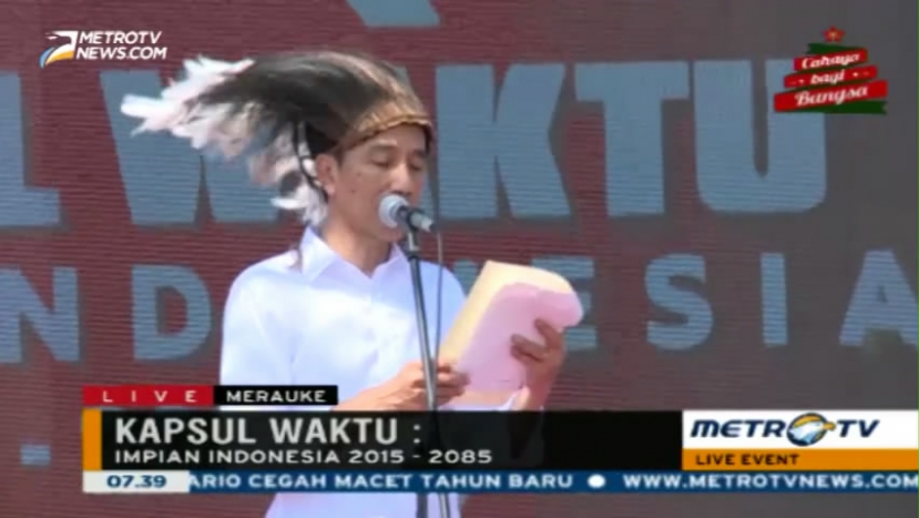 Presiden Joko Widodo mengatakan impian bersama hanya dapat dicapai dengan kerja keras dan kejujuran, dengan begitu kita bisa berkompetisi dengan bangsa lain. Karena Visi ke depan Indonesia adalah kompetisi. Hal tersebut beliau sampaikan dalam pidatonya dalam acara ekspedisi kapsul waktu di Merauke, Rabu (12/30/2015).
