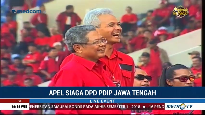 Puluhan ribu kader PDIP asal Jateng mengikuti apel siaga di Stadion Manahan Solo. Acara ini dihadiri oleh Ketua Umum DPP PDIP Megawati Soekarnoputri dan Puan Maharani. Cek Berita dan Artikel yang lain di Google News