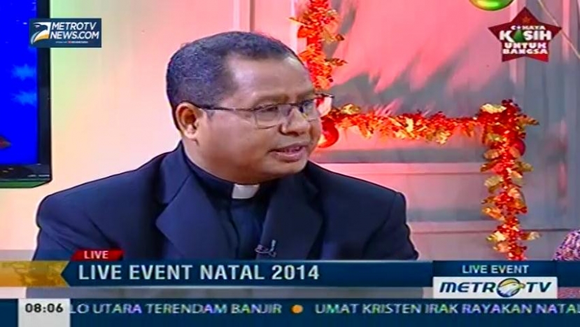 Live Event Natal 2014 kali ini dengan tema "Cahaya Kasih untuk Bangsa", Kamis (25/12/2014) akan menyajikan perayaan natal dari Papua, Toraja, Aceh dan Yogyakarta hingga berbagai tradisi natal yang beraneka ragam. Telah hadir sebagai narasumber Rohaniawan Romo Edward, Orang Tua dari Alm. Ade Sara Elisabeth Diana Dewayanti dan Suroto.