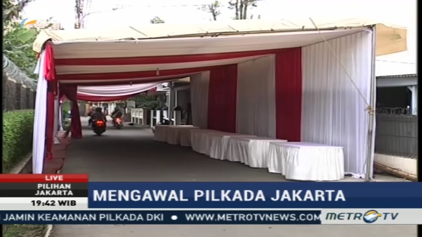 TPS 28 Jalan Haji Nasin Lebak Bulus II, Cilandak Barat, tempat calon Gubernur DKI Jakarta Anies Baswedan memilih hingga kini masih melakukan persiapan. Keberadaan TPS di tengah gang membuat persiapan tidak maksimal karena lokasi masih dilalui kendaraan oleh masyarakat.