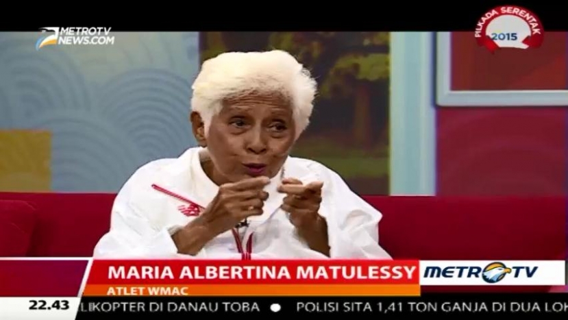 Olahraga atletik cabang lompat jauh dan lompat jangkit menjadi andalan atlet WMAC Maria Albertina Matulessy (Tineke). Di cabang ini ia mendapat berbagai medali di usianya yang mencapai 80-an, Minggu (18/10/2015). Cek Berita dan Artikel yang lain di Google News