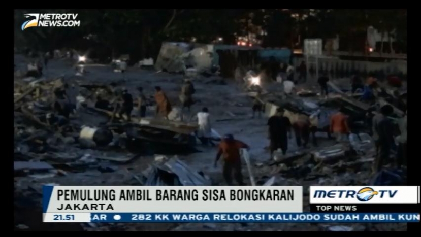 Puluhan pemulung menyerbu sisa-sisa pembongkaran kawasan Kalijodo, Jakarta Utara, Senin (29/2/2016). Sisa-sisa pembongkaran ini akan mereka jual untuk menghasilkan uang. Cek Berita dan Artikel yang lain di Google News