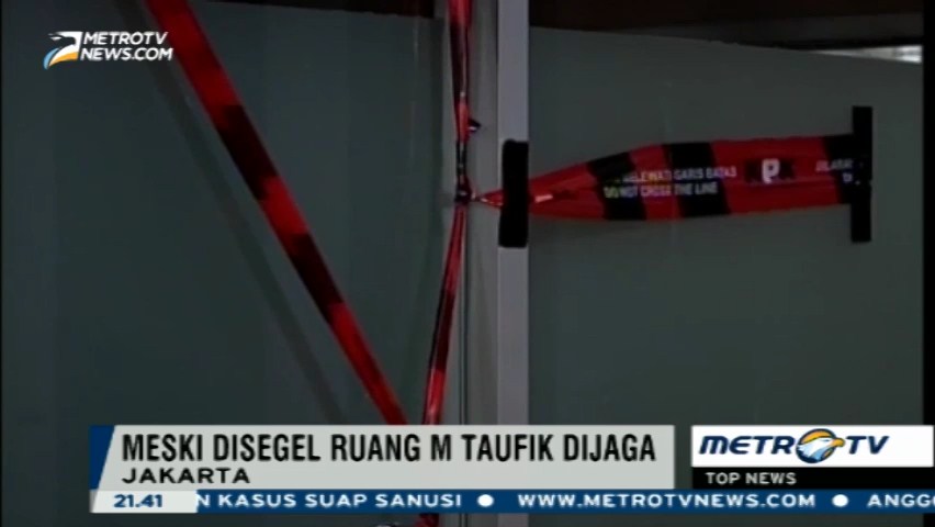 Empat ruangan di Gedung DPRD DKI Jakarta termasuk ruang M Taufik disegel KPK. Namun meskipun disegel, ruang M Taufik mendapat penjagaan ketat, Jumat (1/4/2016). Cek Berita dan Artikel yang lain di Google News