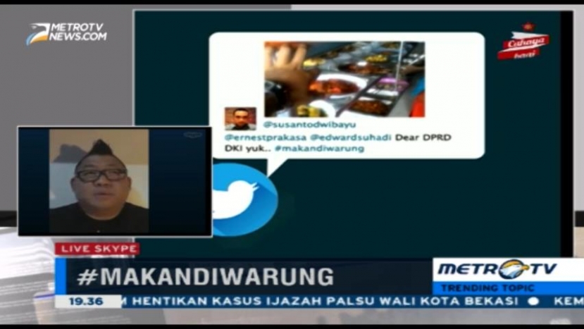 Wakil Ketua DPRD DKI Jakarta Mohammad Taufik mengusulkan kenaikan tunjangan mencapai Rp2 juta per hari. Hal ini menuai banyak komentar dari masyarakat, salah satunya Edward Suhardi yang menggagas #makandiwarung di media sosial twitter. Menurut Edward hal ini bertujuan untuk menunjukan kesederhanaan kepada wakil rakyat, Kamis (17/12/2015). Cek Berita dan Artikel yang lain di Google News