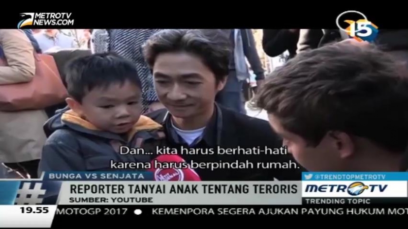 Sebuah video memperlihatkan wawancara dengan seorang anak yang merasa takut dengan teror yang terjadi di Paris. Kemudian jawaban sang ayah yang menenangkan dan membawa perdamaian ini membuat haru dunia, Kamis (19/11/2015).