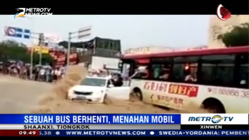Hujan badai menerjang Kota Yuin di Provinsi Shaanxi, Tiongkok. Kejadian tersebut memicu banjir di sejumlah daerah yang berada di dataran rendah, Senin (15/8/2016). Cek Berita dan Artikel yang lain di Google News